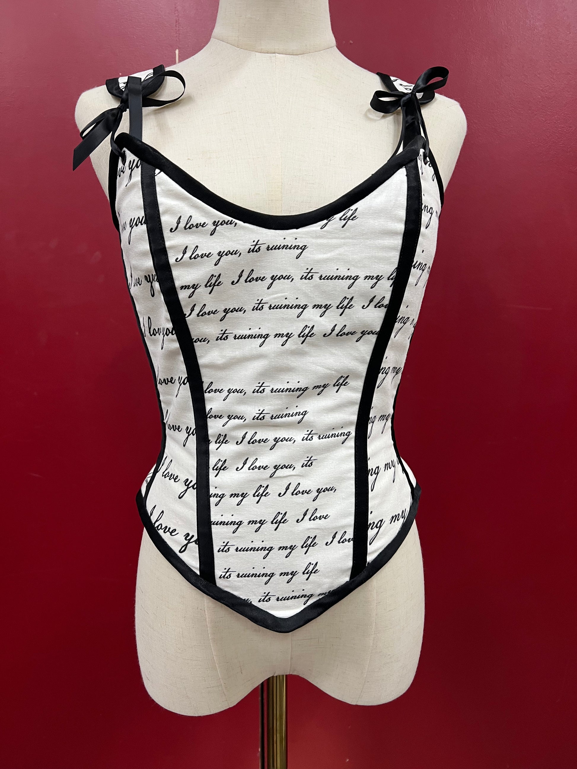 When ordering, I require your bust, underbust, waist and hip measurements, as well as bra size and height. Measurements are most accurate when you have a friend do them for you.