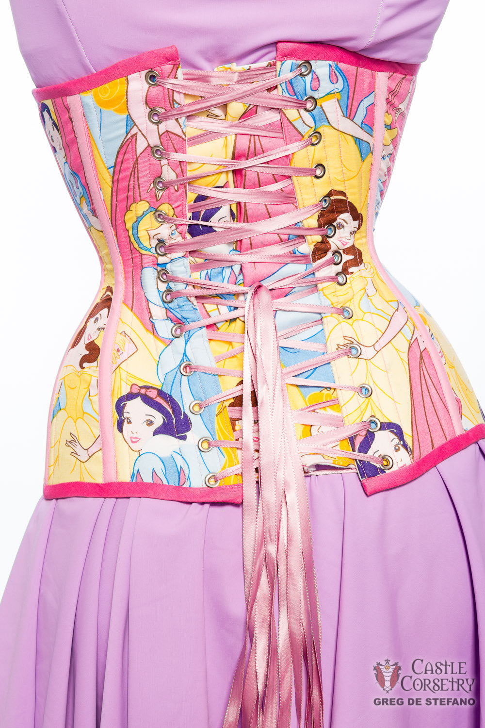 This nerd-tastic corset is a fantastic item to make you the center of attention at the next Comic-Con. This is my best corset for waist training and tight lacing. The pattern cups under your underwire bra and helps lift and support the bust. The waist and hips get shaped all the way down, as the corset comes way down over your hip for a seamless curve. There's a strong steel busk at center front for the wearer's ease, and garter tabs to use for underwear or a sexy look. With 22 total steel bones (double boned at every seam), 10 spring steel and 12 spiral steel, look no further for your waist training needs!