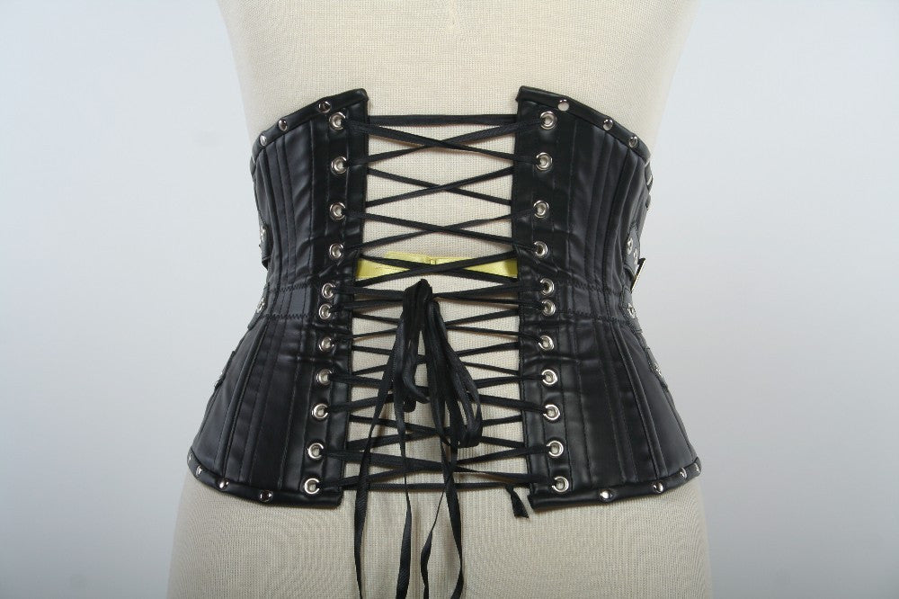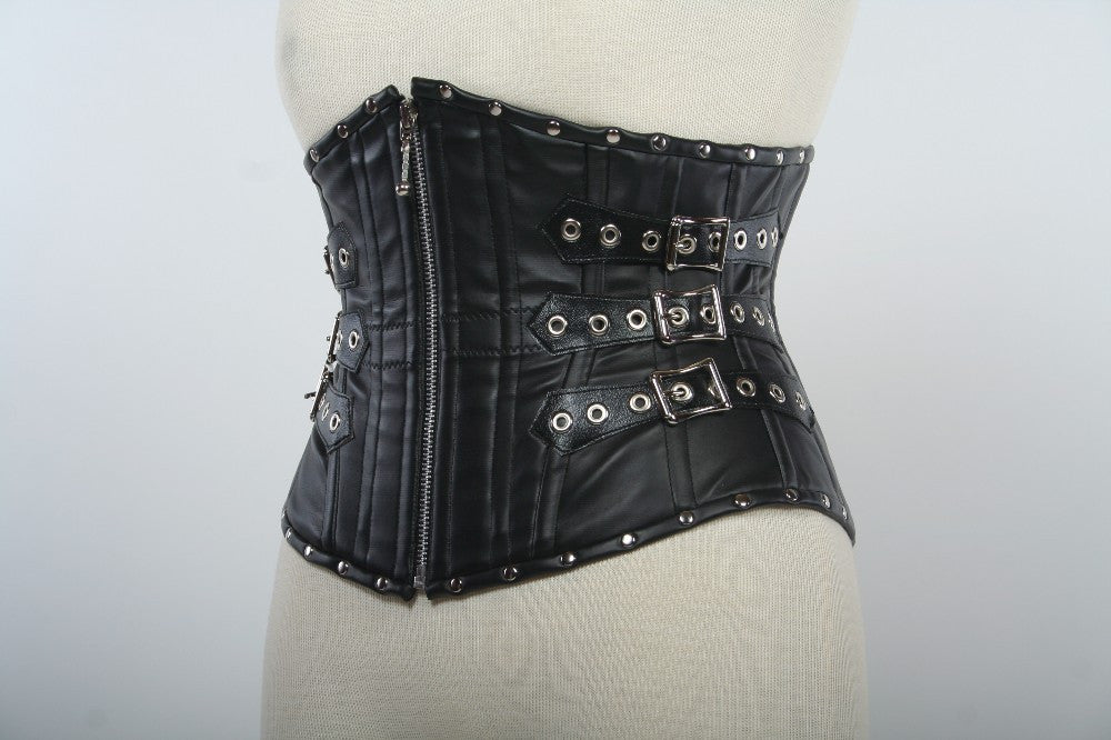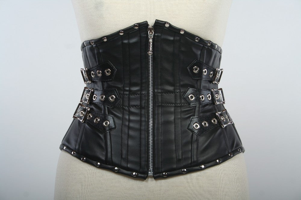 This was designed for those interested in cosplaying Repo! The Genetic Opera. It is a nearly perfect recreation of the corset Amber Sweet (Paris Hilton) wears in the scene Zydrate Anatomy. It shapes the waist beautifully with its tight-lacing pattern, 20 total steel bones, 10 German spring steel and 10 spiral steel, and a heavy metal zipper down center front for wearing ease. It is lined in heavy cotton twill for stability. The buckles are there for show, they do not function!