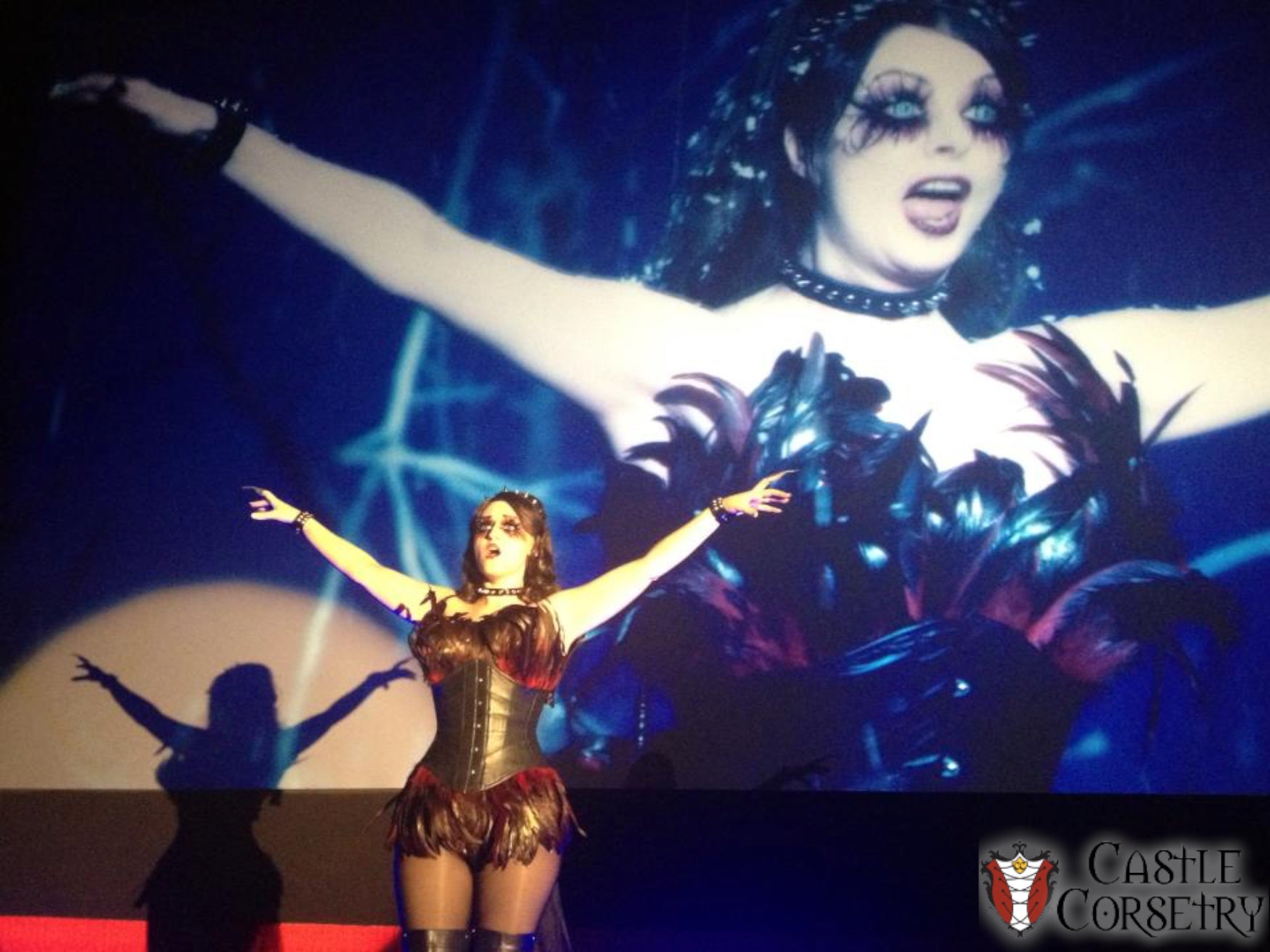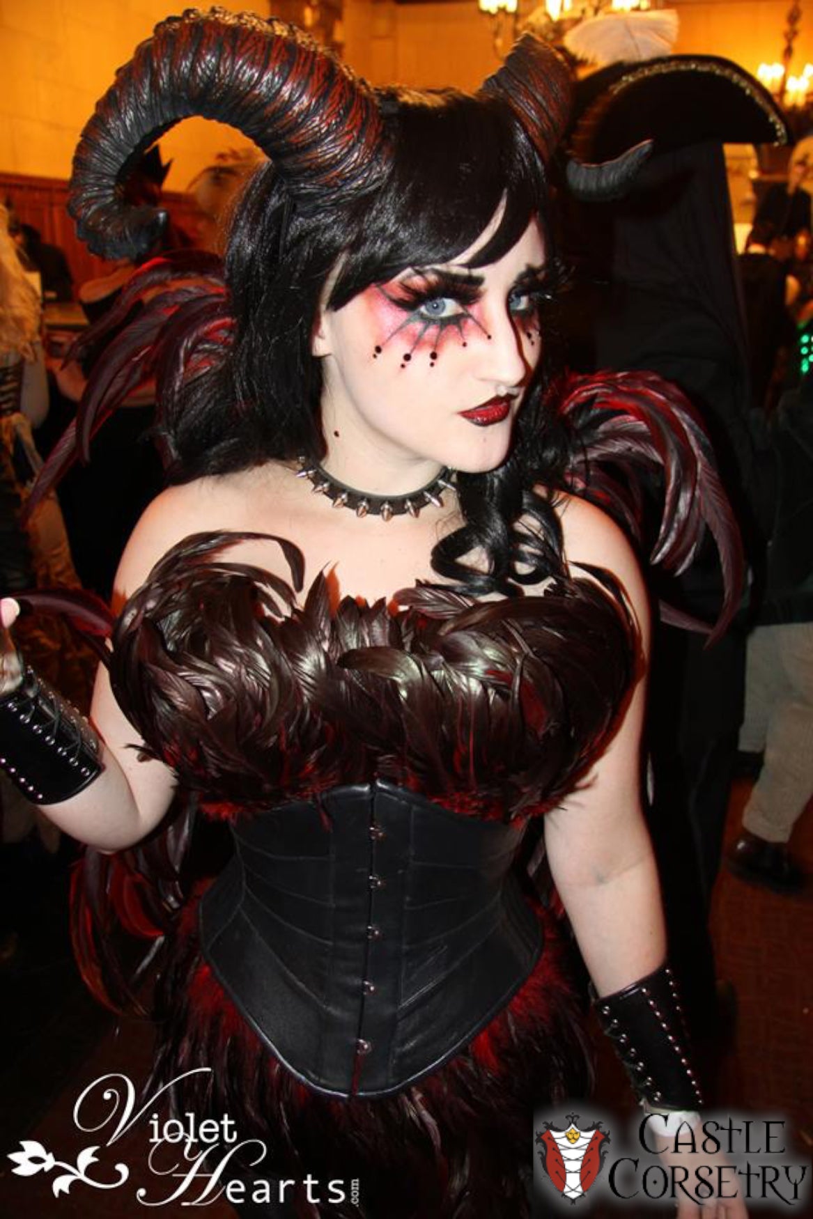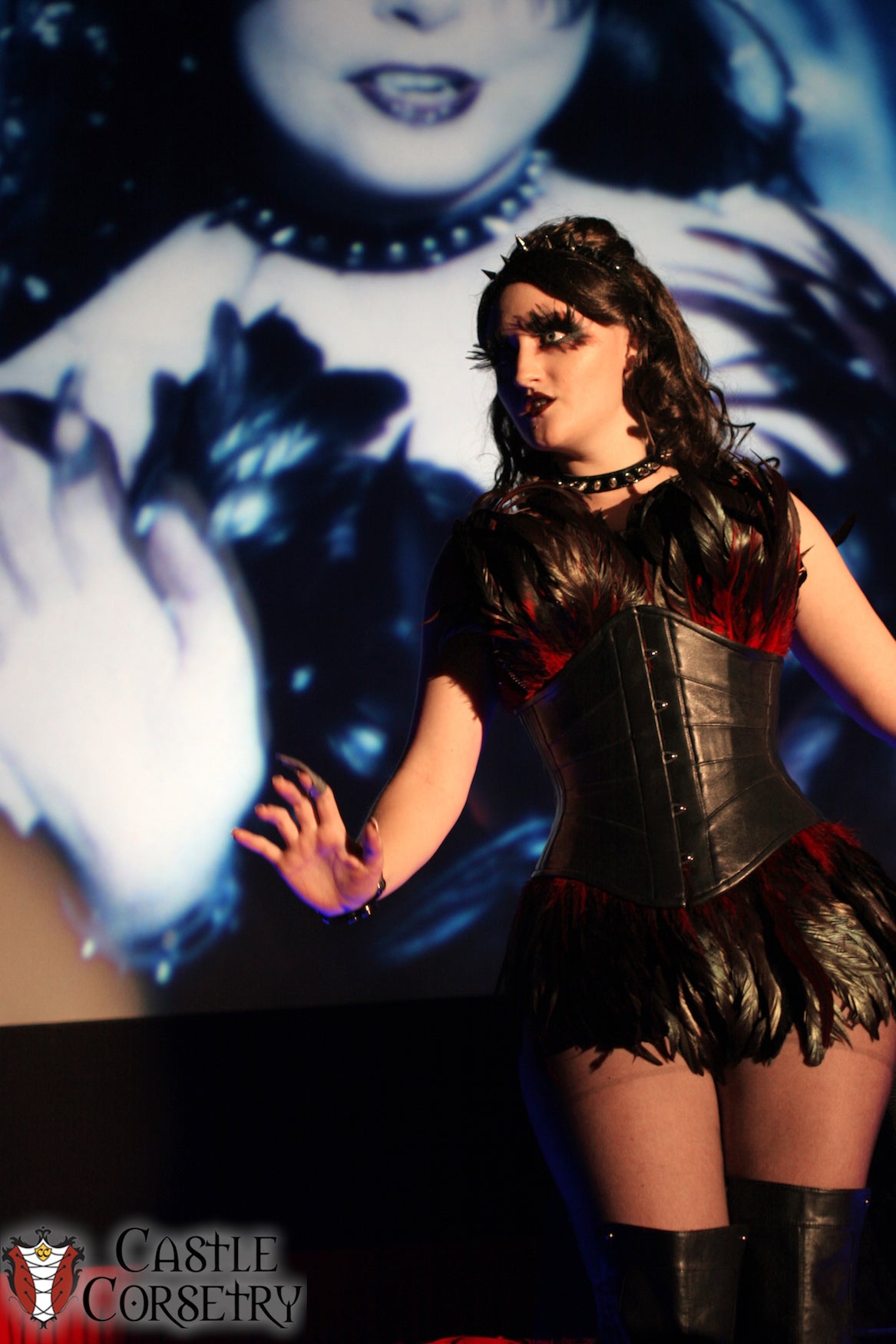 This was designed for those interested in cosplaying Repo! The Genetic Opera. It is a nearly perfect recreation of the corset Blind Mag (Sarah Brightman) wears in the scene Chromaggia. It shapes the waist beautifully with its classic ribbon pattern, 18 total steel bones, 8 German spring steel and 10 spiral steel, and a heavy five-prong steel busk down center front for support and wearing ease. It is lined in heavy cotton twill for stability. The one in the photo was made with real lamb-skin leather hide, but if you contact me, I can make it up in vinyl at a lesser cost. Also, this price DOES NOT include the feathers! That is a completely separate piece, but I'd be happy to work out a custom listing for you if you wanted both for the full Mag look